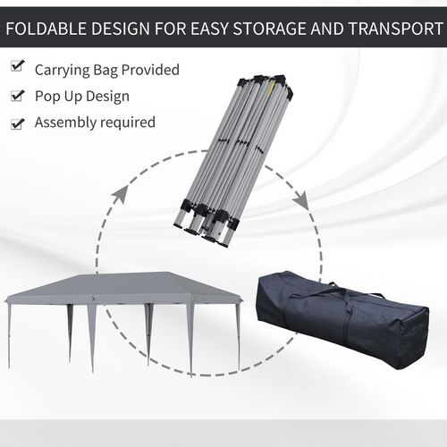 This Outsunny 6m x 3m pop-up gazebo is the perfect solution for creating a shaded area wherever you need it. Designed for outdoor use, this versatile garden shelter boasts a robust powder-coated steel frame paired with a durable 210D Oxford cloth canopy cover. Its foldable and easy-to-assemble design makes it ideal for a variety of temporary occasions such as garden parties, BBQs, receptions, car boot sales, and more.
