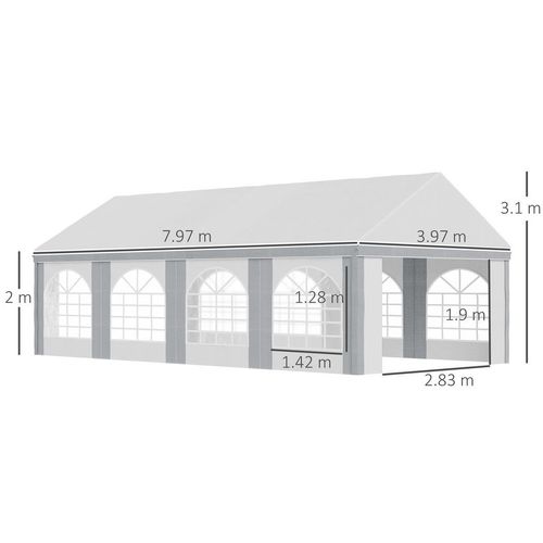 8 x 4m Party Tent, Marquee Gazebo with Sides, Eight Windows and Double Doors