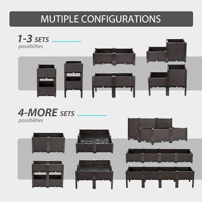Set of 4 Stylish Raised Garden Planter Boxes in Brown & Grey